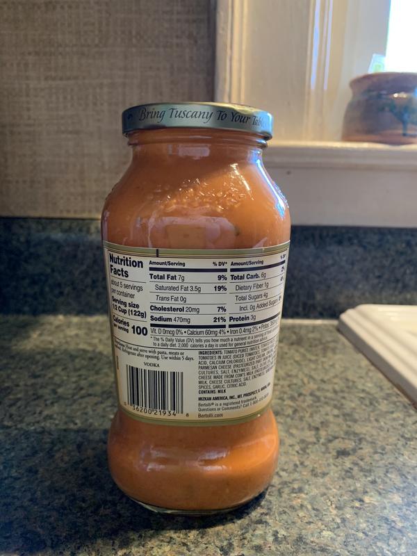 Pantry Pasta Sauces Grains Pasta Sauces Red Sauces. Up to 2 cash back Shop for Bertolli Vodka Sauce 24 oz at Kroger. Serving Size 050 cup125g Serving Per Container about 5.